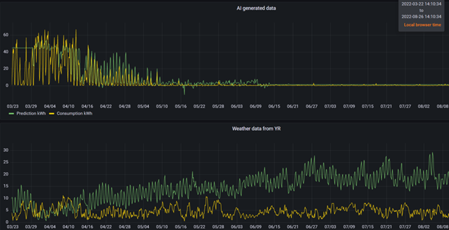 Optimering og reducering af energiforbrug i produktionsleddet. Her har vi leveret en logningsløsning til tre kraftvarmeanlæg i Nuuk, Grønland. Her er formålet at få indsigt i den energimængde som leveres ud i varmenettet samtidigt med at en algoritme trænes til at kunne forudsige forventet energiaftag i fjernvarmenettet ud fra kommende vejrudsigter. Nukissiorfiit opnår detaljeret viden om mængden af varmetab i forsyningsnettet når den producerede energimængde sammenlignes med den afregnede.